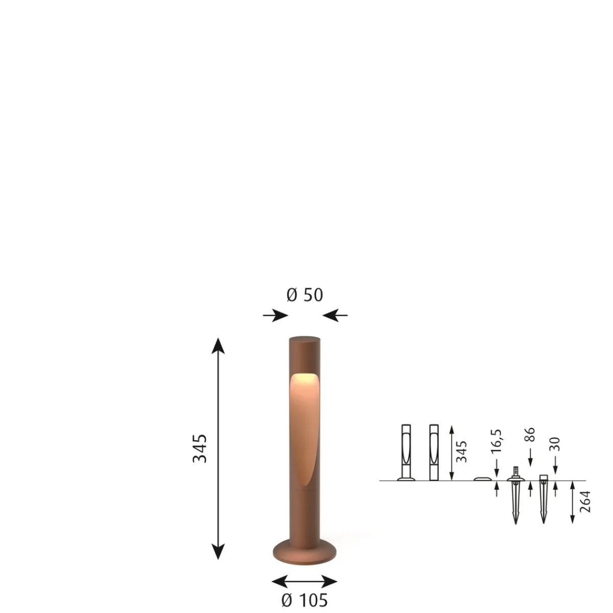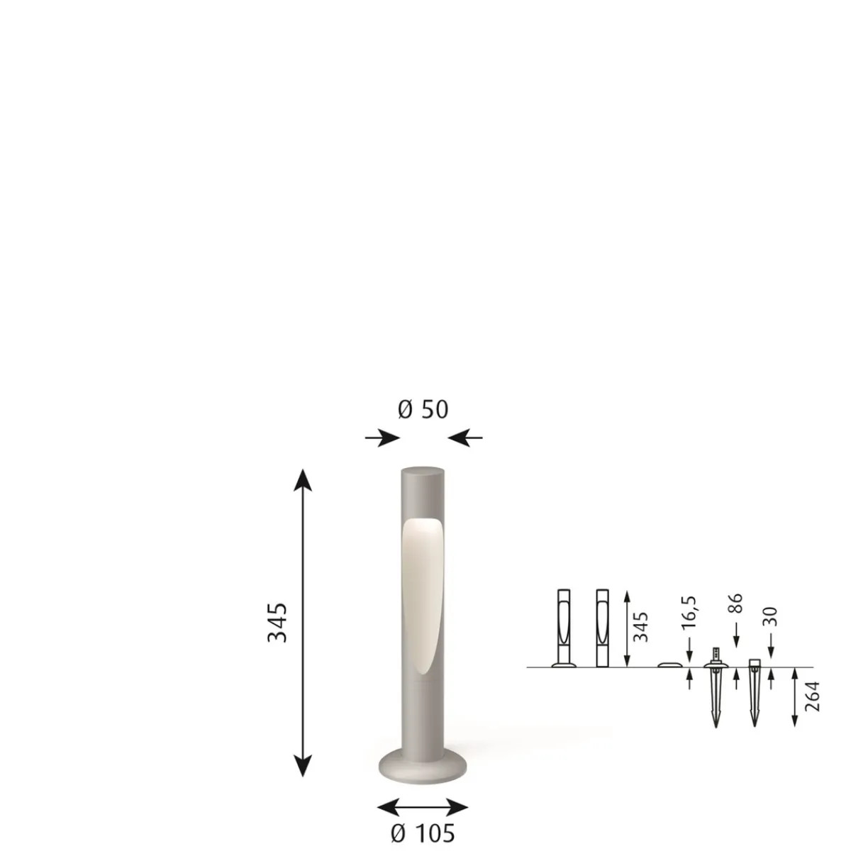 Armaturen avgir et bredt, nedadrettet blendefritt lys. Lyskilden hviler på toppen inne i den asymmetriske utskjæringen på siden av pullerten, hvor gradienten fungerer som en reflektor som mykner lyset og danner en behagelig organisk form på bakken nedenfor.