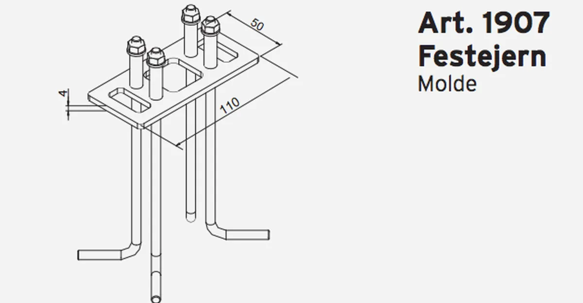 Brukes der det skal støpes under lampen. Denne støpes ned for å ha feste til lampen.