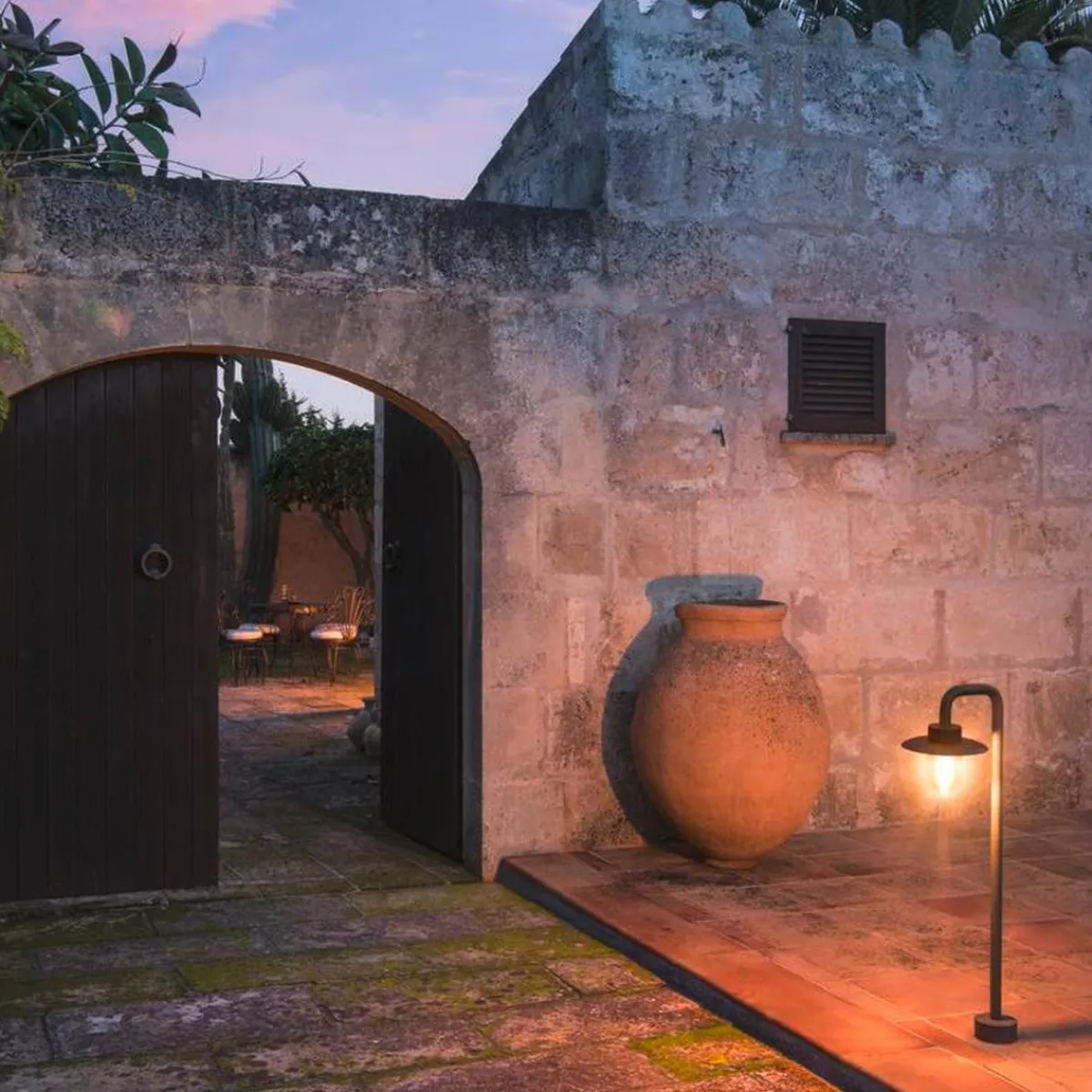 MOLAT POLE pullert er utstyrt med en E27-sokkel og består av aluminium og et armaturglass som skjuler den integrerte sokkelen. armaturhodet er montert på en Fast, buet arm og peker nedover. Med kapslingsgrad IP44 er den egnet til utendørs bruk.