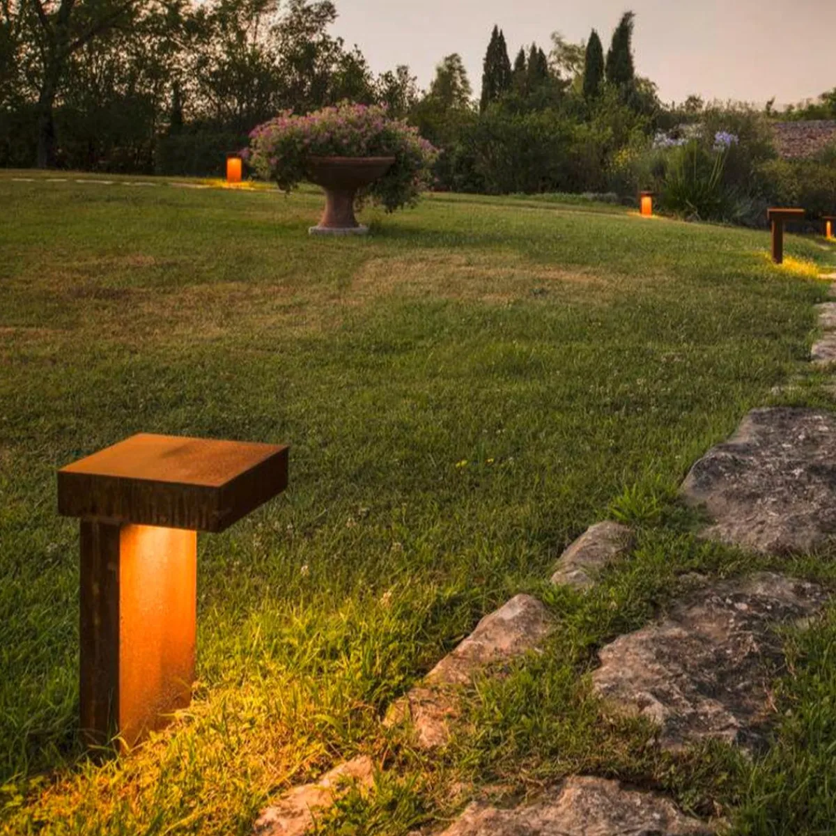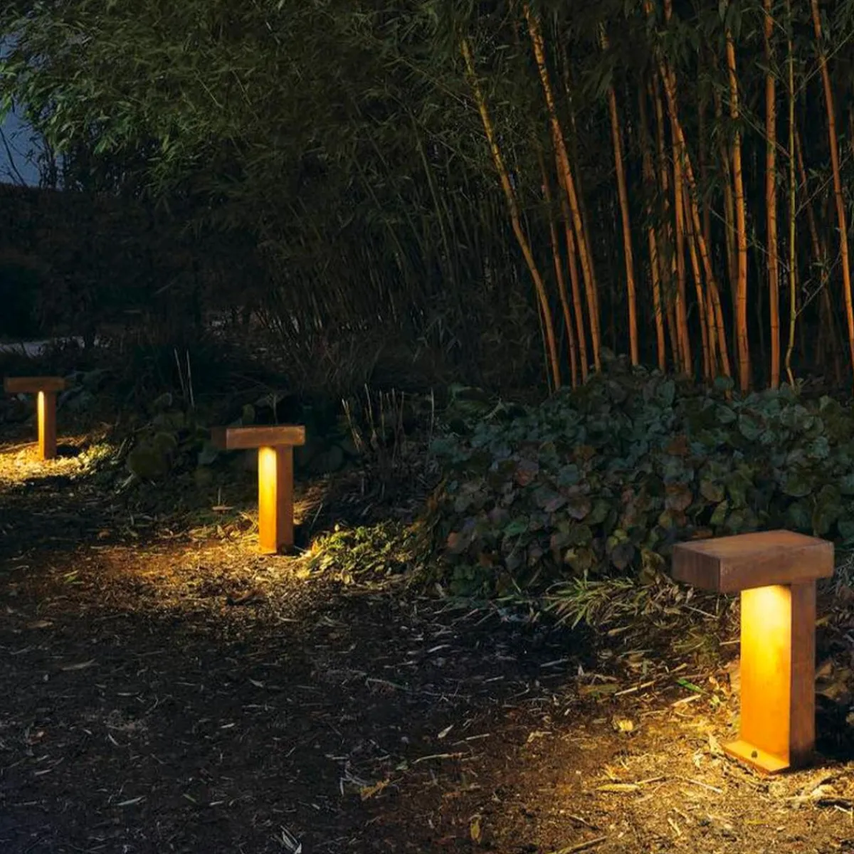 Pullerter i RUSTY® PATHLIGHT-serien avgir direkte lys og overbeviser med sin uvanlige rust-look. Bruken av FeCSi-stål gjør at det påvirkning fra vær og vind fører til at det dannes et kontrollert lag med rust på overflaten. Dette laget beskytter den egentlige substansen mot videre korrosjon. Dette gjør armaturene unike og helt spesiell i enhver installasjon. Med kapslingsklasse IP44 er den egnet til utendørs bruk. Et jordspyd samt en koblingsboks for sikker elektrisk tilkobling i den firkantede armaturfoten finnes som ekstrautstyr. Alle variantene som er i handel, kobles til 230 V nettspenning.