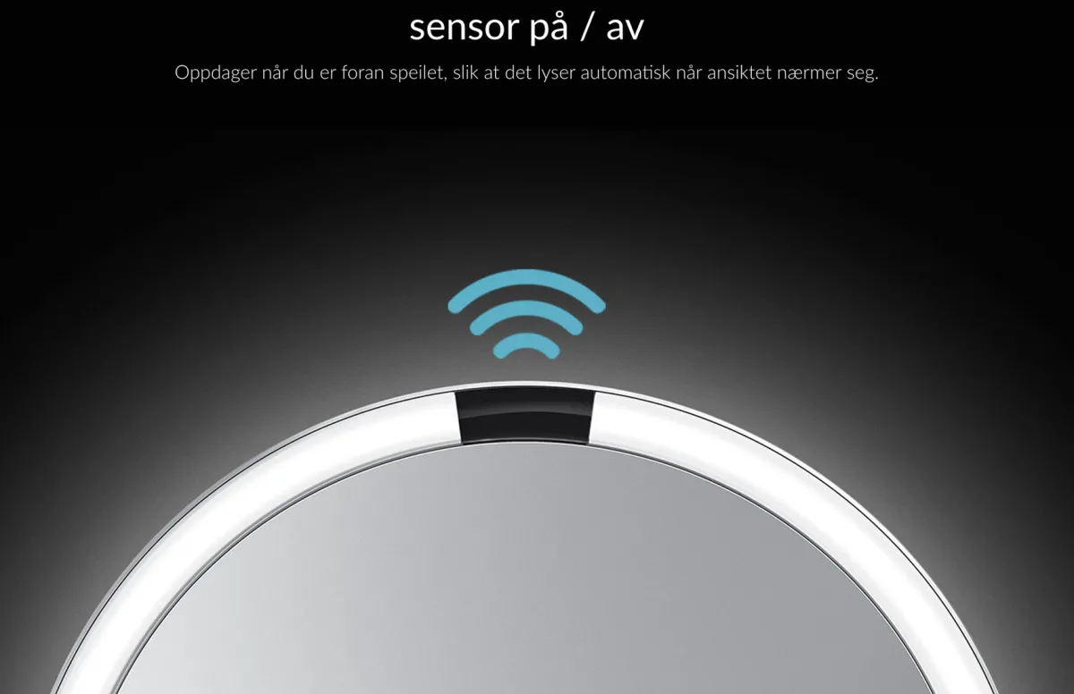 Speilet tru-lux lyssystem, som simulerer naturlig sollys, slik at du alltid vil vite når sminken din er fargekorrekt og feilfri. Bruk lysstyringslinjen til å endre lysstyrkenivået eller speile deg i et mykere lys. Last ned appen Simplehuman Mirror for å justere lydtoner, få tilgang til forhåndsinnstillinger for lys, eller slå på smarte funksjoner som nattlysmodus.