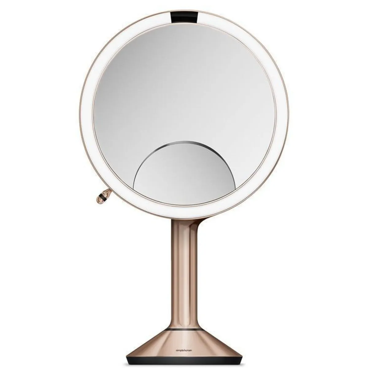 Vårt sensorspeil trio med berøringskontroll er som å ha tre speil i ett. En side har 5x forstørrelse, slik at du kan se hele ansiktet ditt i eksepsjonell detalj. Og med en rask, enkel flip til den andre siden får du en 1x sann visning med et lite 10x vindu nederst for detaljer, perfekt når du for eksempel skal bruke eyeliner – alle forstørrelsene du trenger for å gjøre sminkeprosessen enkel og knirkefri.
