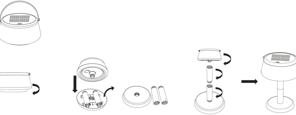 Oppladbar lampe med solcelle. Lad opp via USB eller solcelle. Av/på-touchknapp med dimmefunksjon. Kreativ bordlampe hvor man enkelt kan justere høyden. Hempen kan enkelt legges ned ved siden av skjermen. Leveres inkl. USB A til C ladekabel (1m).