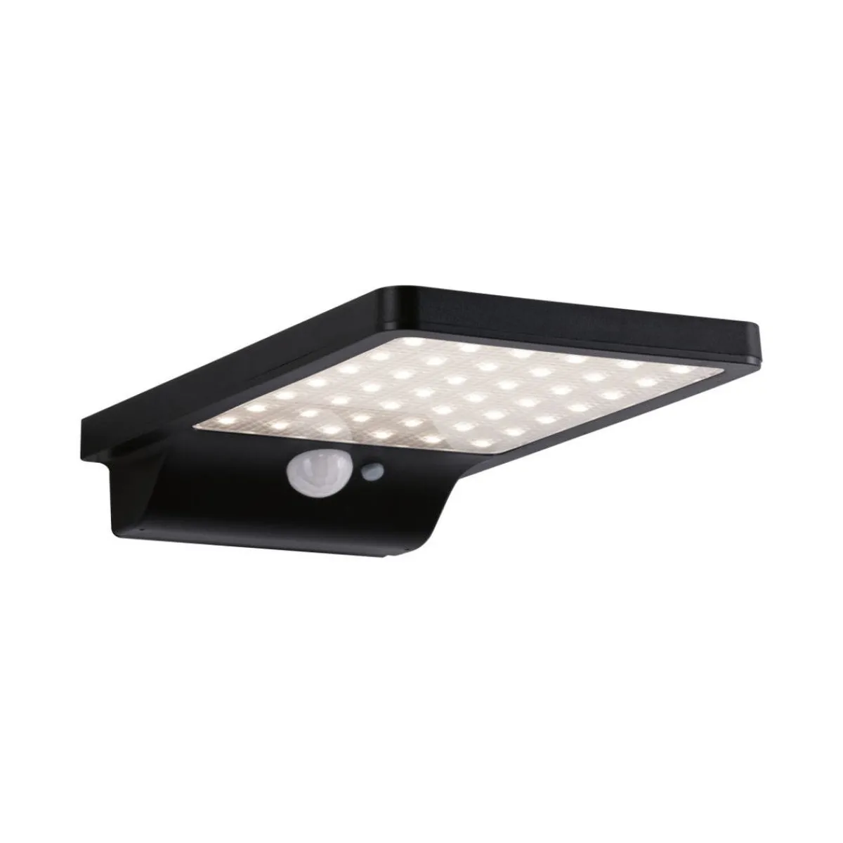 Solveig solcelleveggarmatur i sort og 338 lm lyser opp ytterveggene dine og lyser opp området foran hjemmet ditt. Takket være praktisk solcelleteknologi er det ikke nødvendig med strømtilkobling for installasjon. Batteriet lades opp med sollys på dagtid og et lite orienteringslys lyser i skumringen, som erstattes av et funksjonslys når noen nærmer seg. Armaturen er spesielt beskyttet mot inntrenging av fuktighet og støv, takket være IP44-beskyttelse.