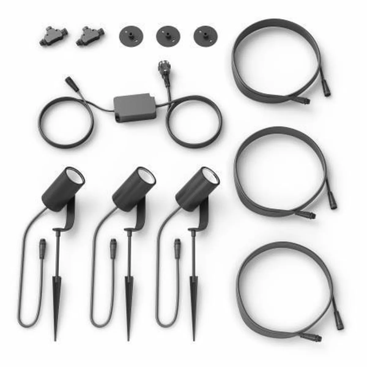 Lily Spike serien er et plug&play system – noe som betyr at du står fritt til å installere og bygge videre uten behov for el-installatør. Serien består av basekit med 3stk LED spotter med markspyd og strømforsyning og et extensionkit med 1stk LED spot med markspyd for å bygge videre på ditt Hue system. Du kan montere dem med markspyd i bed, hage eller lignende, eller du kan ta bort markspydet og montere på veggen – mulighetene er mange.