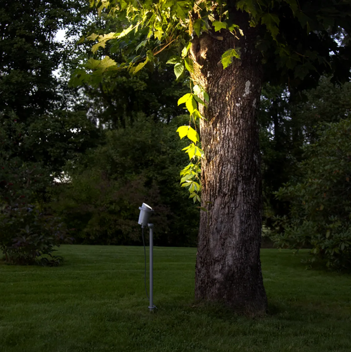 Hagebelysning med GU10 lamper. Mørkegrå aluminiumsspot for utendørs bruk, ca 65 cm høy. Lys opp hagen din med denne elegante spotlampen. Startkabel er inkludert. Varier lyset med forskjellige lyskilder, ikke inkludert.
