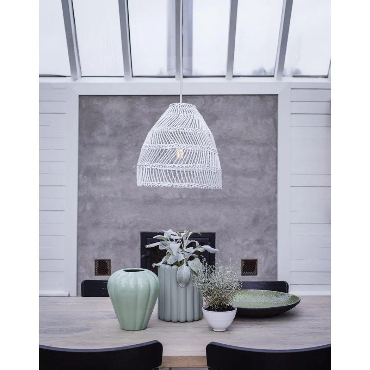 Maja takskjerm i en vakker vridd rotting. Passer like godt utendørs under tak, i drivhus og vinterhager som innendørs Husk at det er et naturmateriale og at vær og vind kan påvirke utseendet. Takskjermen selges sammen med Flex out lampeoppheng. 2,5m lampeoppheng IP44 godkjent for utendørs bruk som ligger med i pakken.