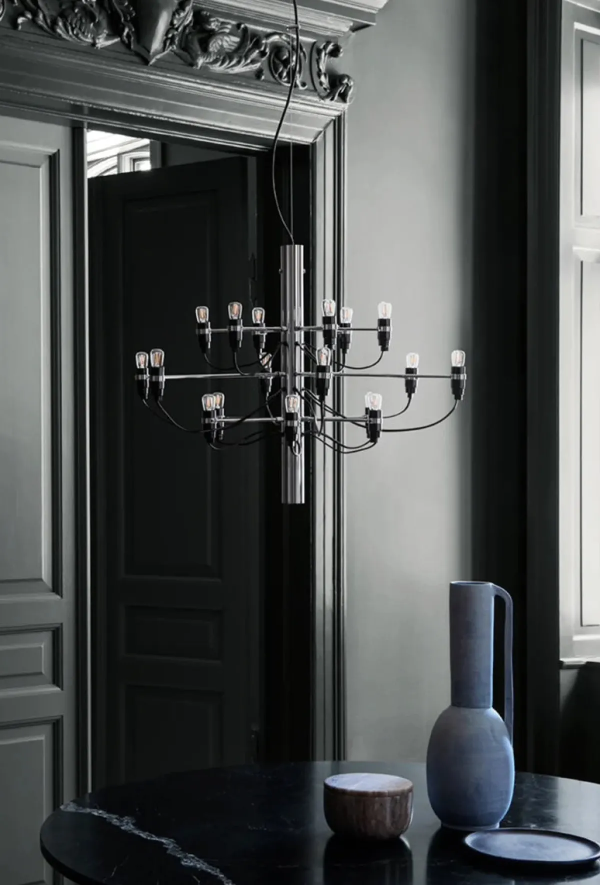 Lysekronen 2097 fra FLOS er en tidløs og klassisk lampe som hever ethvert rom. Den er tilgjengelig i sølv, messing, hvit og matt sort og i fire størrelser. Lysekronen 2097 ble designet av Gino Sarfatti i 1958 og har blitt ett lampeikon. Dette er en tidløs designklassiker og lysekronen gir mye lys til rommet. Flott å bruke over spisebord, over salongbordet, på soverom og i trappeoppgang.