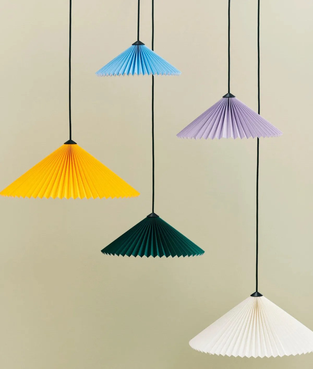 Matin Pendellampe består av en plissert bomullsskjerm kombinert med en bomullsflettet ledning som kan henges fra taket for å skape en funksjonell og elegant pendel. Skjermen gir en innbydende atmosfære til de fleste rom i hjemmet og kommer i forskjellige størrelser og fargealternativer.