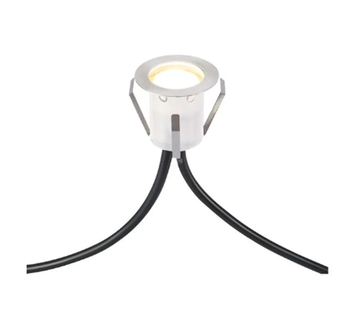 6 stk decklight i rustfritt stål. IP44 godkjent for utendørsbruk. 75 cm in- og utgående kabel i pvc, for mulighet for vidarekopple. Transformator selger separat.