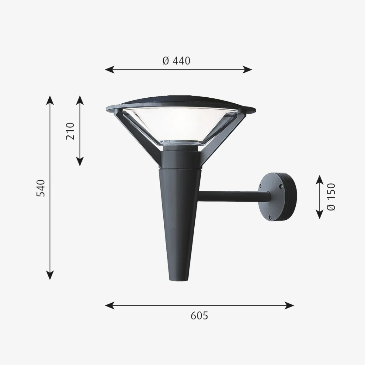 Armaturen utsender symmetrisk, direkte nedadrettet lys. Forholdet mellom den litt buede toppskjermen og vinkelen på den indre opale avskjermingen gir en bred lysfordeling uten gjenskinn.