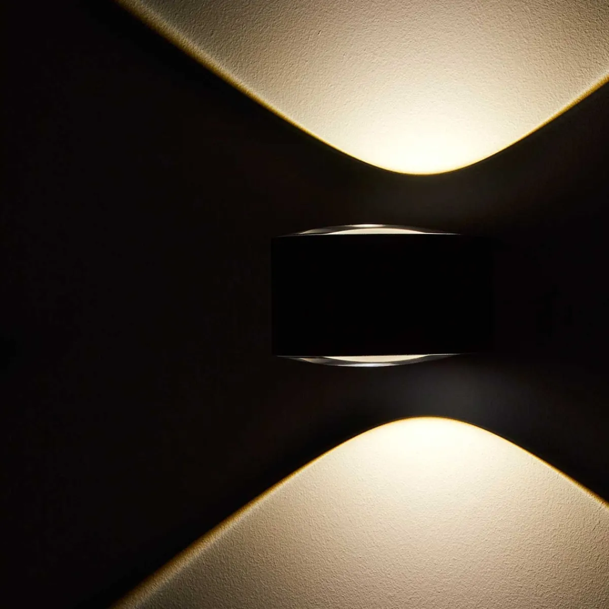Frey IP65 vegglampe i svart har et trendy design med sylinderformet skjerm og krystallglass linser. Det kan avgi fantastisk lys på kjøkkenet, stuen, badet og på fasaden utendørs. Lysets 100 ° strålevinkel oppover og nedover som en lyskjegle, gir et fint lysspill på veggen. Lampen har en innebygd LED, laget av støpt aluminium, og er tilgjengelig i svart eller hvit med en IP65-kapslingsgrad