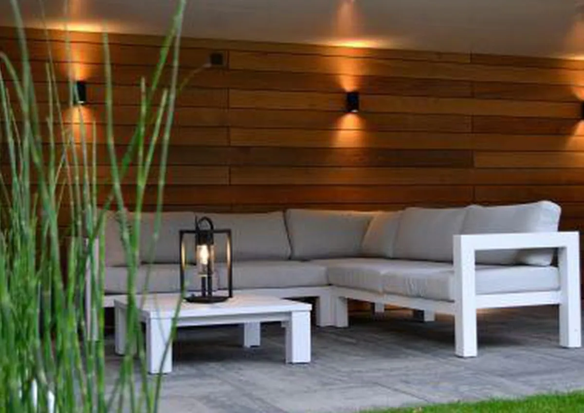 Tidløs vegglampe som lyser opp/ned med utskiftbare lyspærer.