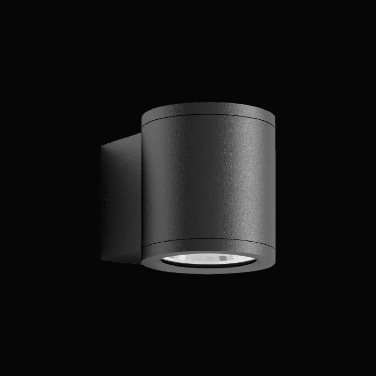 Gemma up or down er en sylinderformet vegglampe med nedlys for utendørsbruk. Leveres med 45° lys spredning og mørk grå farge i støpt aluminium.