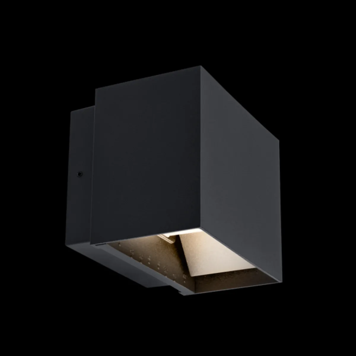 Veggmontert utelampe med opp/ned lys i moderne design. Lysfordelingen kan justeres fra 15° til 210° ved å endre posisjon på de innvendige klaffene. Materiale av aluminium.