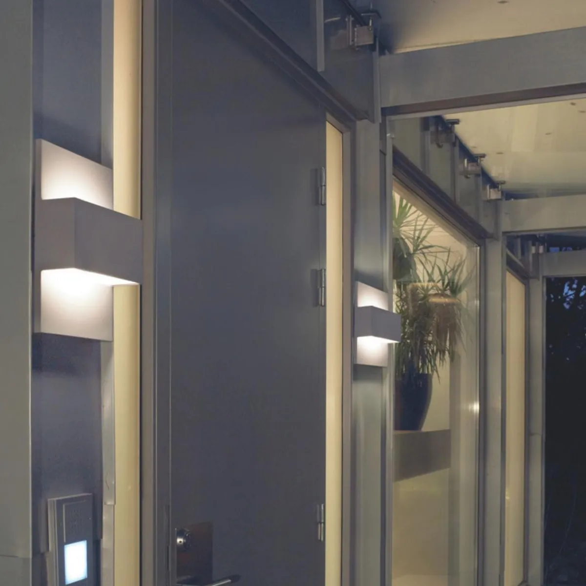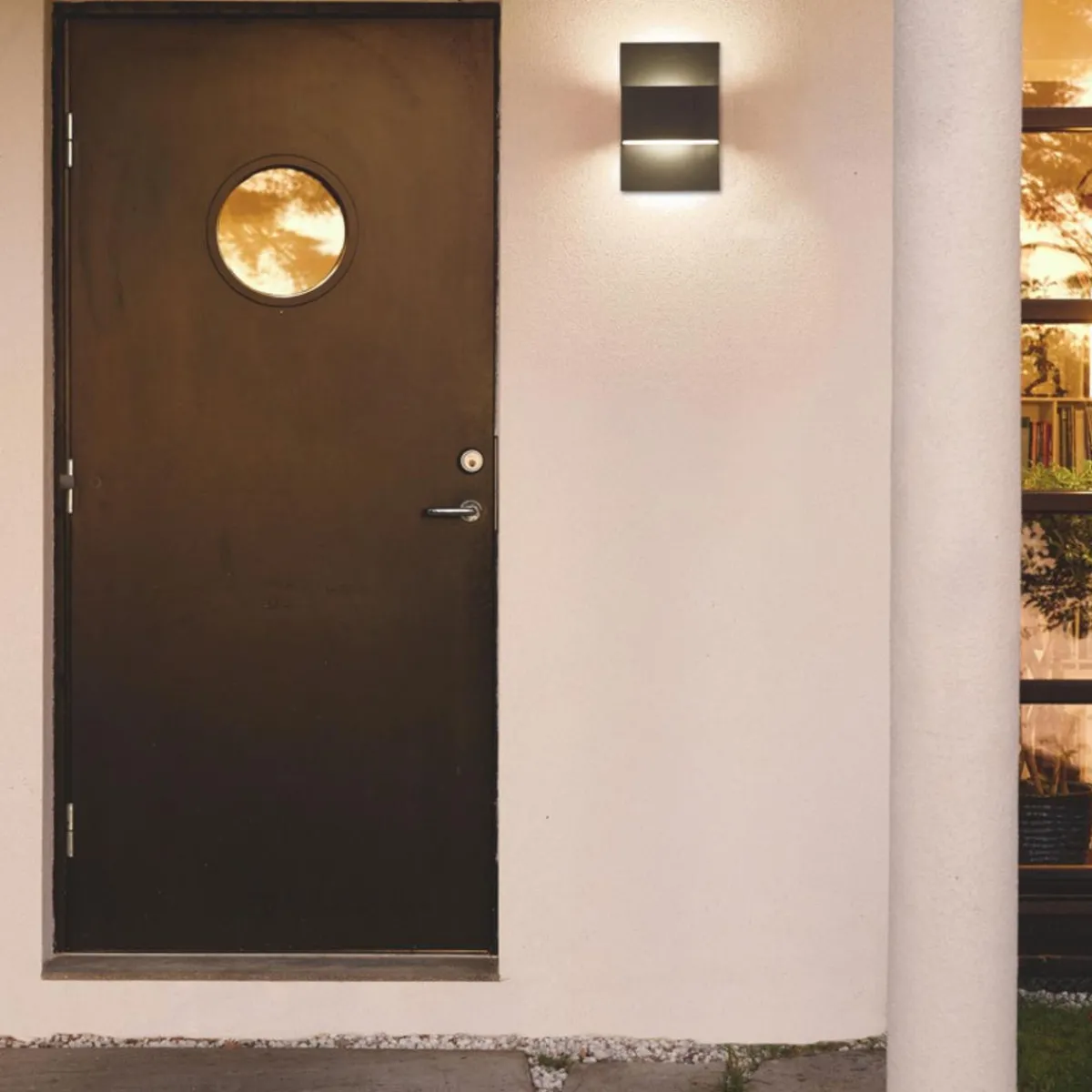 Moderne og stilren vegglampe i aluminiumstøp. Indirekte opp og ned lys. Geneve leveres i fargene aluminium, grafitt og hvit.