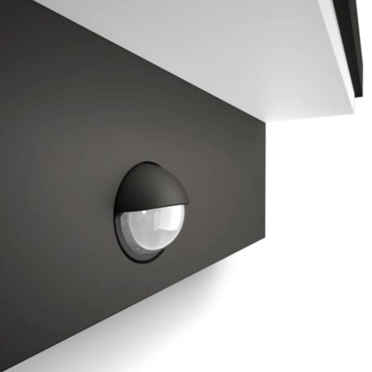 Denne vakre L-formede Philips Bustan-vegglampen i antrasittgrå aluminium av høy kvalitet kaster fra seg et diffust varmhvitt LED-lys på veggen. En bevegelsessensor følger med, slik at den slår seg automatisk på når noen kommer i nærheten.
