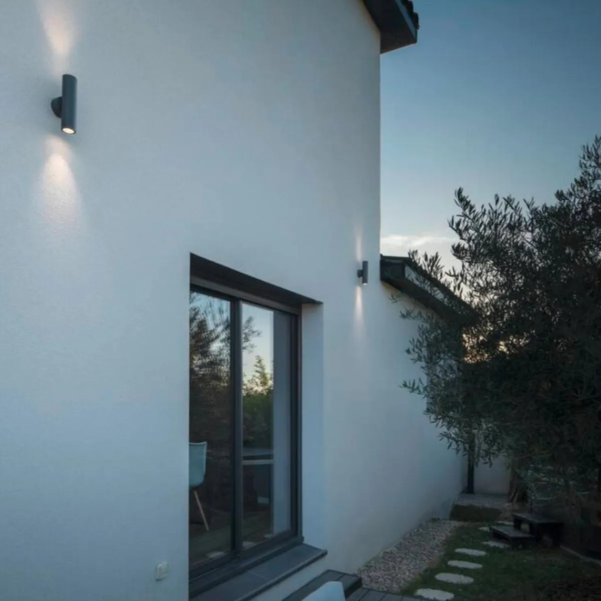 ASTINA veggarmatur består av aluminium og glass som dekker lyslyskildene. De to integrerte soklene er plassert slik at armaturet utstråler to like lyskjegler i to forskjellige retninger (UP/DOWN). Med kapslingsklasse IP44 er den egnet til utendørs bruk. armaturet finnes i flere farger. Den kobles til elektriske anlegg med 230 V nettspenning.