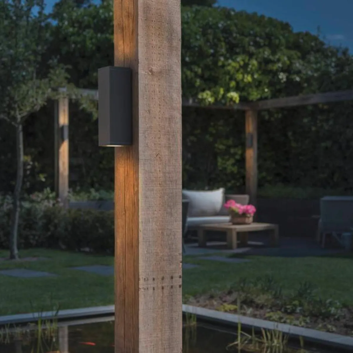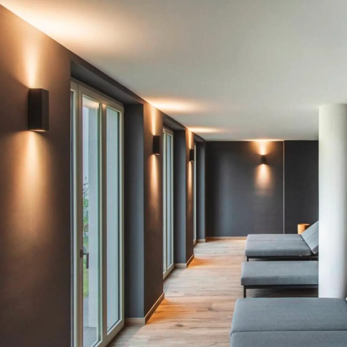 Veggarmatur fra THEO serien er laget av aluminium og glass som dekker lyskilden. Takket være posisjonen til de to integrert fatningene, lager den monterte armaturet to lyskjegler i motstående retning (UP/DOWN). Kapslingsklassen IP44 gjør armaturet egnet for utendørs bruk. Den elektriske tilkoblingen skjer direkte til 230 V nettspenning.