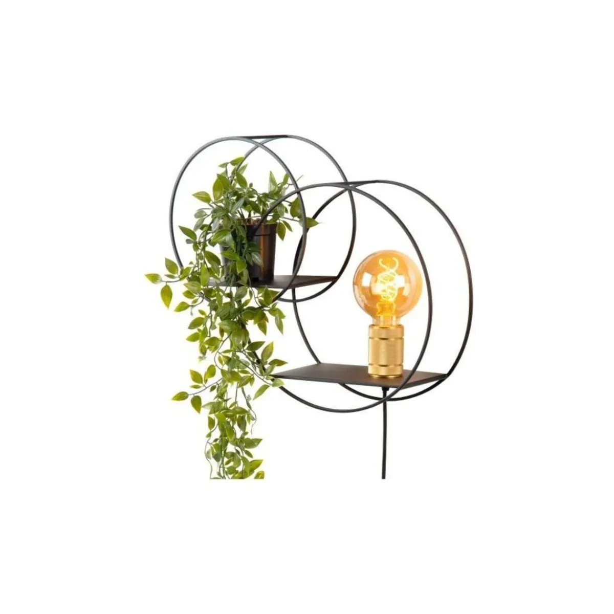 Leter du etter en dekorativ vegglampe med ekstra plass? Circle tilbyr deg mer enn bare lys. Med dobbel bunn kan du enkelt plassere en plante, en fotoramme eller en statue ved siden av den gjennombrutte lyspæren. Glødetrådspæren er forankret i en messingarmatur og er omgitt av to åpne, fine sirkler.