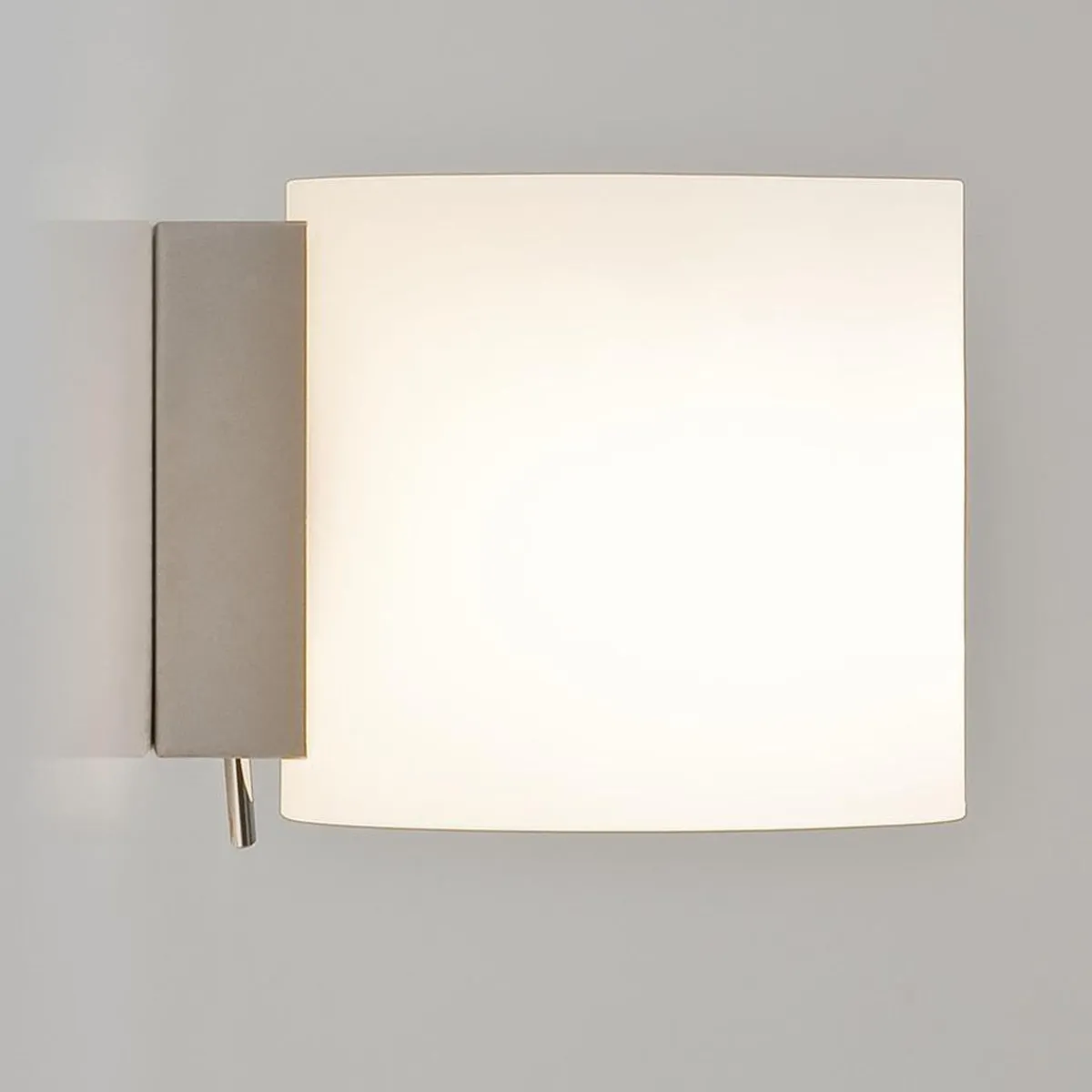 Luga er en nydelig vegglampe med hvit glasskuppel som lyser opp og ned.