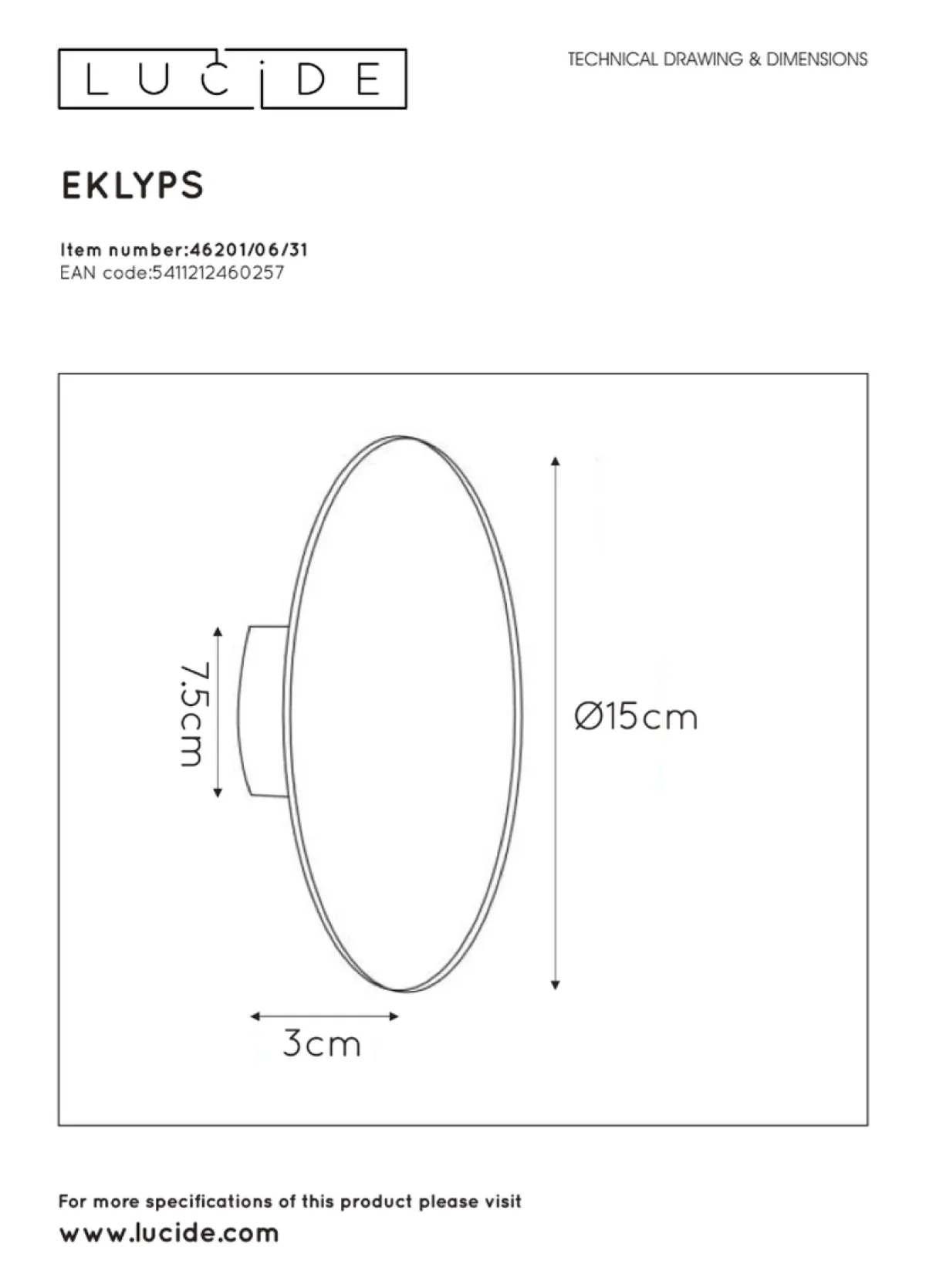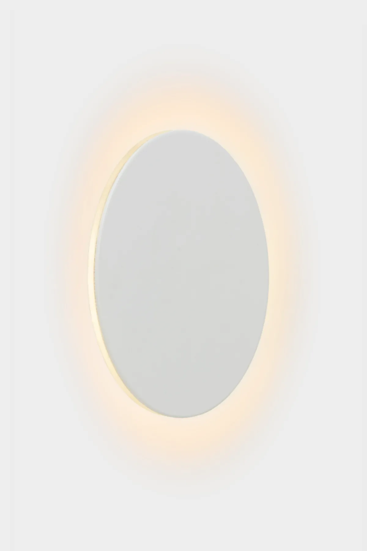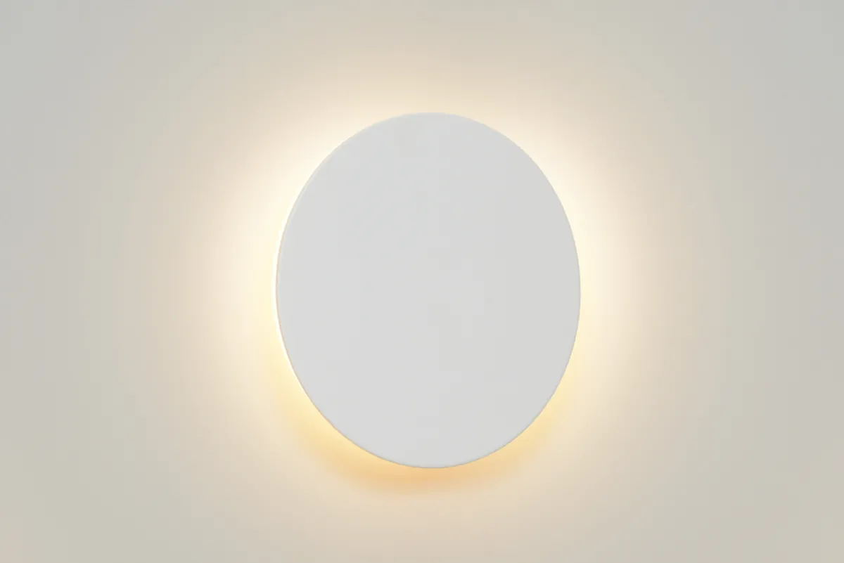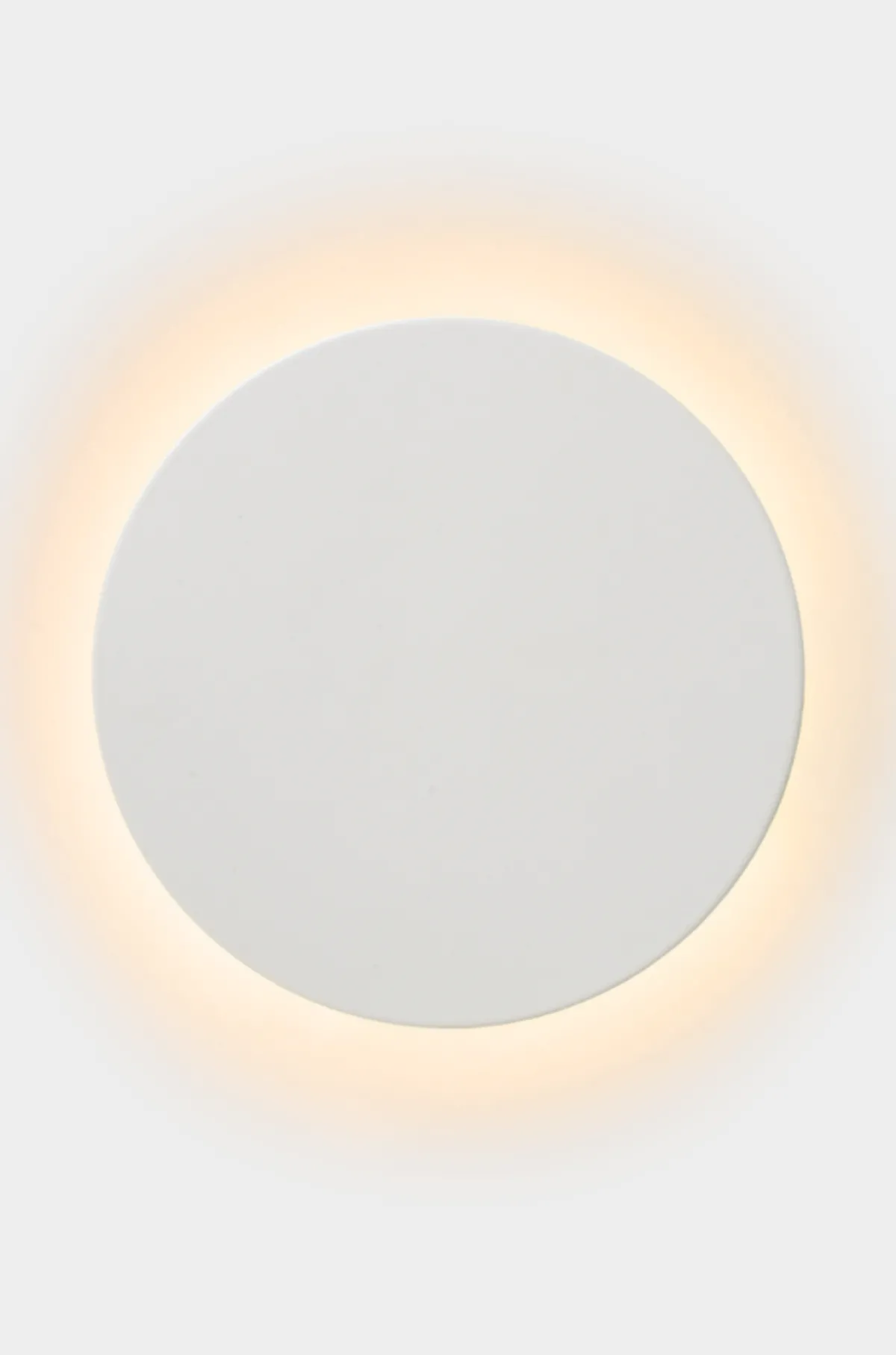 Et koselig varmt lys i taket eller på veggen. Belysningen er skjult bak en elegant metallskive. Når lyset er slått på, endres platen til en diffus glød som skaper varm belysning. Vegglampens aluminiumsokkel kan enkelt festes til veggen. Eklyps passer perfekt i moderne interiør og i stort sett alle rom.